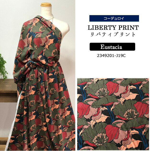 細畝で縫いやすい人気の秋冬素材の「コーデュロイ生地」 Eustacia(ユースタシア) 様式化されたポピーを隙間なくレイアウトした典型的なアールヌーボーの花柄は、元々は1961年にプリントされましたが、それ以前のリバティ社のアーカイブ・デザインがベースになっています。