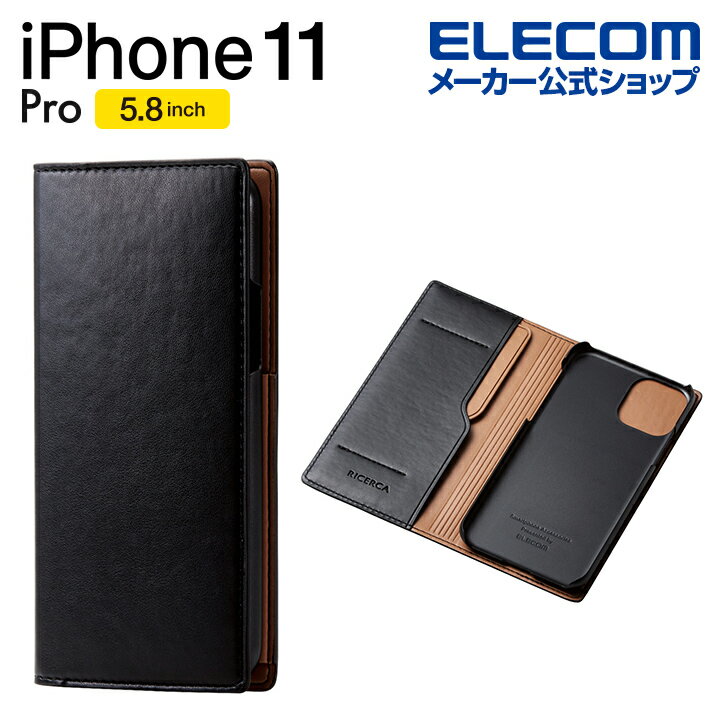 エレコム iPhone 11 Pro 用 ソフトレザーケース イタリアン Coronet 三つ折り ケース カバー iPhone11 Pro iPhone11Pro 5.8インチ 5.8 スマホケース ソフト レザー シンプル ケース ネロ:PM-A19BPLFKILBK[訳あり][エレコムわけありショップ][直営]