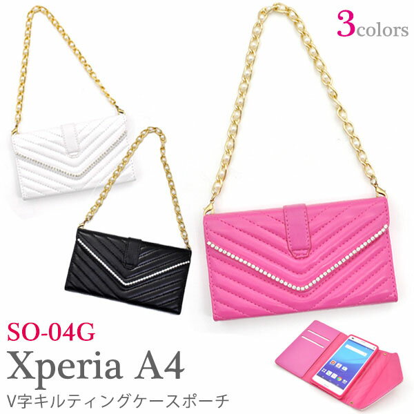 【送料無料】Xperia A4 SO-04G用V字キルティングケースポーチ(全3色)チェーン付●液晶画面も保護する三つ折り手帳タイプ!レザー調 エクスペリア用ケース/ドコモ au スマホカバー ソニー docomo 手帳型ケース