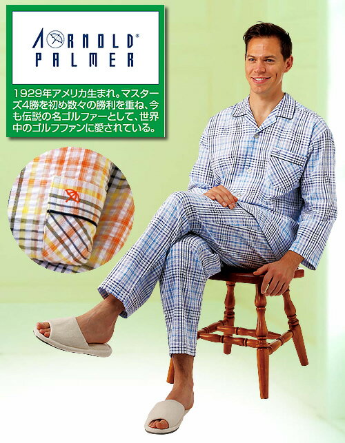 ■広告文責 株式会社ルイアンヌ ■アーノルドパーマー サッカーチェック柄パジャマ同サイズ2色組 爽やかな凹凸のあるサッカー生地を使用 寝苦しい夏にサラッと爽快な綿100%のパジャマです 汗の季節にも快適な綿100%シアサッカー素材を使用した長袖パジャマ。