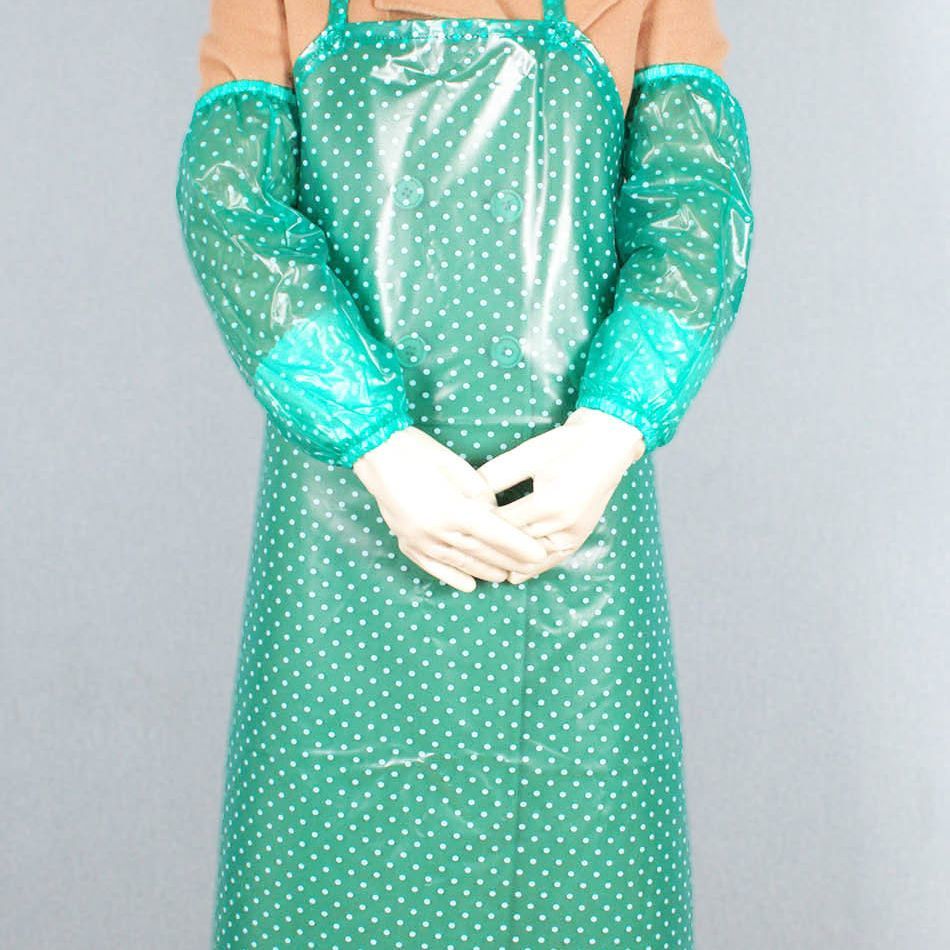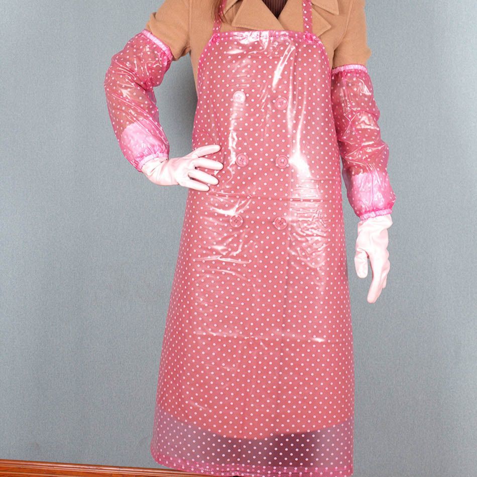 送料無料エプロン キッチン クリーニング アームカバー付き 大掃除 防水 ドット柄 かわいい カジュアル 男女兼用 レッド